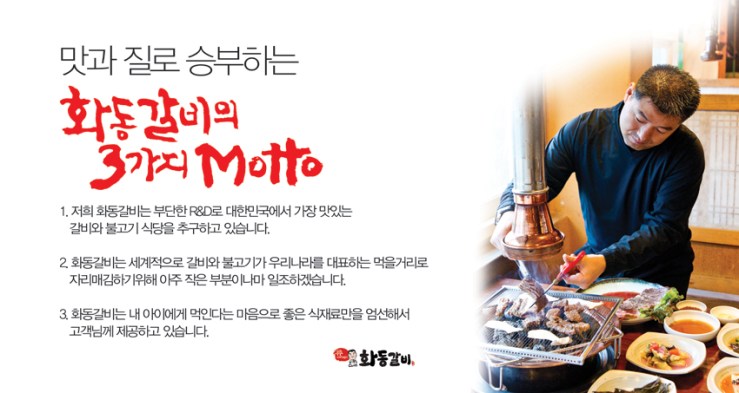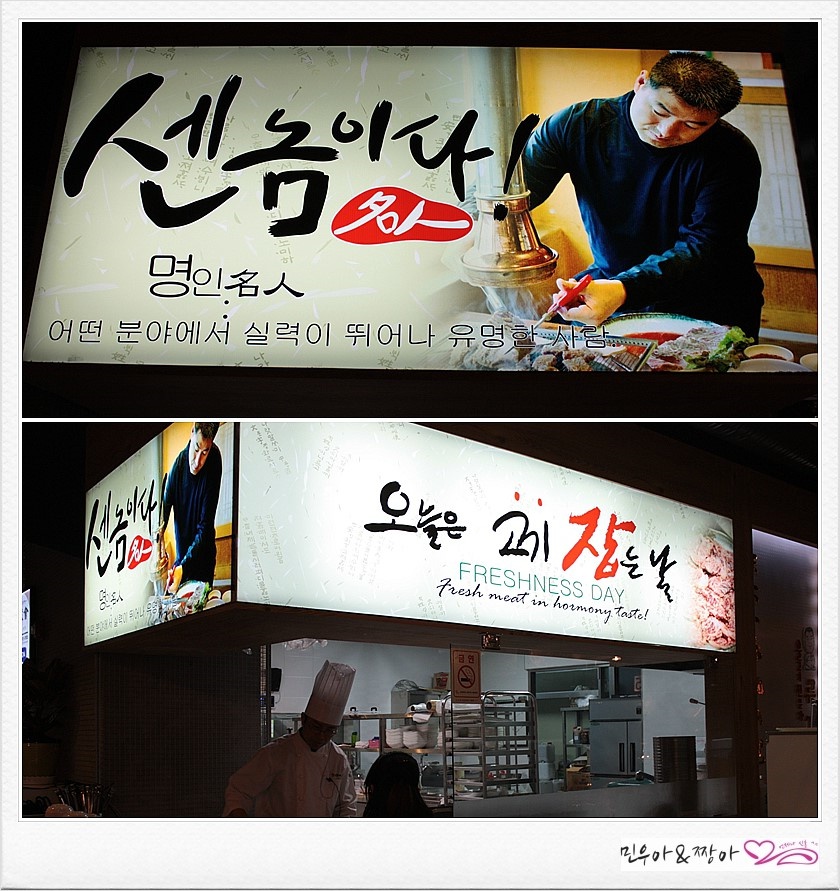 화동갈비를 하면서 짧은 시간동안 머리를 짜냈지만 아쉬움이 남는 간판이다. 무언가 다릅니다. 무언가 더 전문적입니다. 무언가 좋습니다. 이곳엔 장인이 신선한 고기를 제공합니다. 이게 바로 ‘센놈이다, 오늘은 고기잡는날’이다