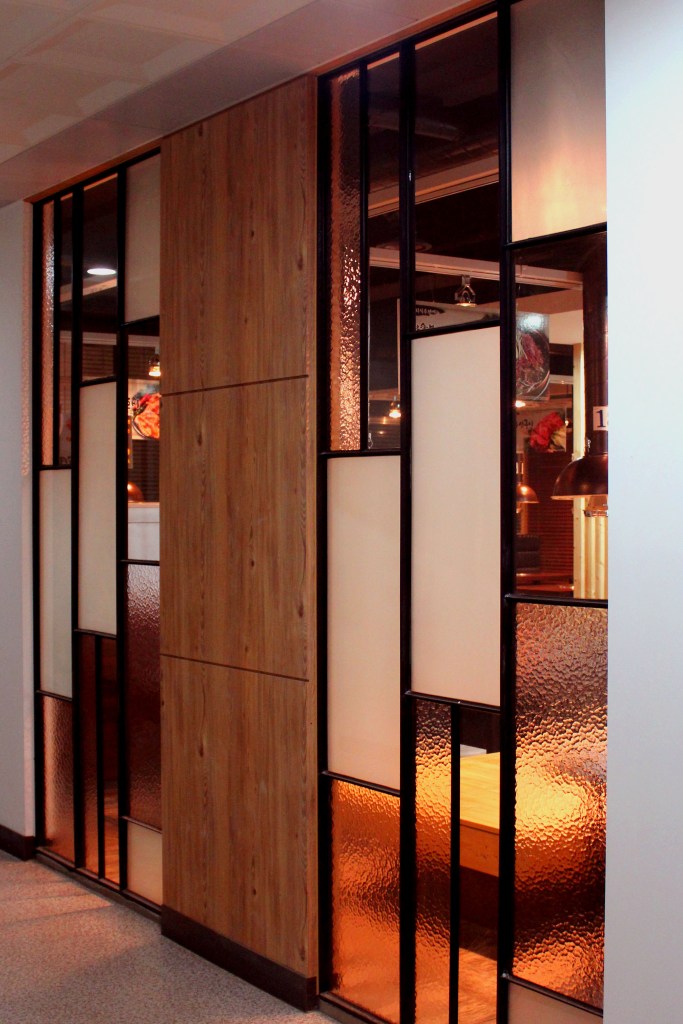 1. 철바 파티션에 3가지의 유리를 넣은 모자이크방식