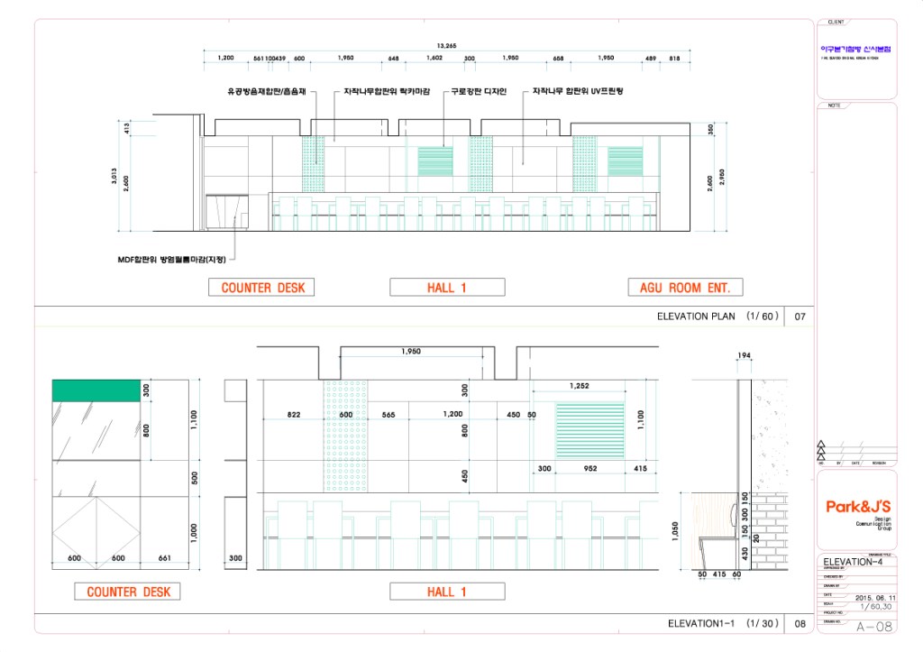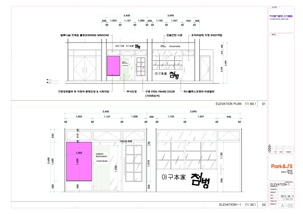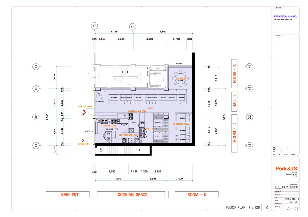 [아구전문점 첨벙 본점 STORY] 작은 움직임은 크게 네가지로 다음과 같다. 1. 입식 or 좌식, 서양식 or 동양식, 테이블 or 온돌방 2. 클래식 or 모던, 전통적 or 현대적, 계승 or 변화 3. 30cm의 공간과의 싸움 4. Blue와 Green의 색상은 식욕을 감퇴하는 색인가? 는 처음부터 끝까지 많은 생각과 아이디어를 필요로 했다.