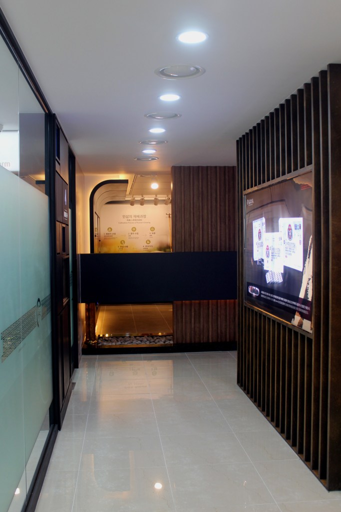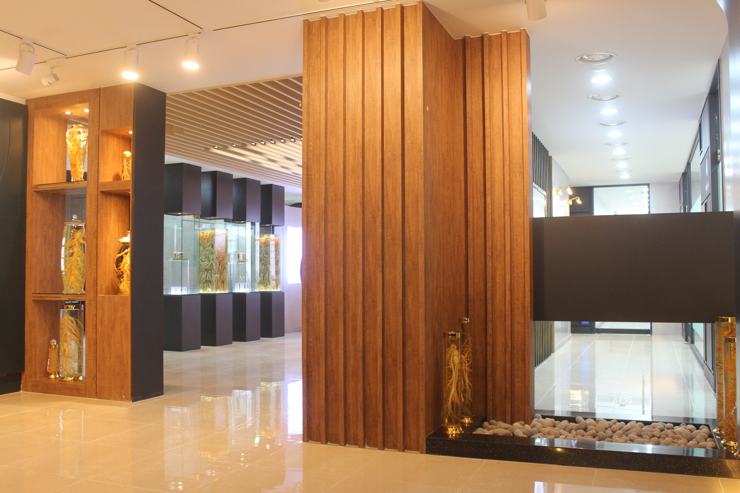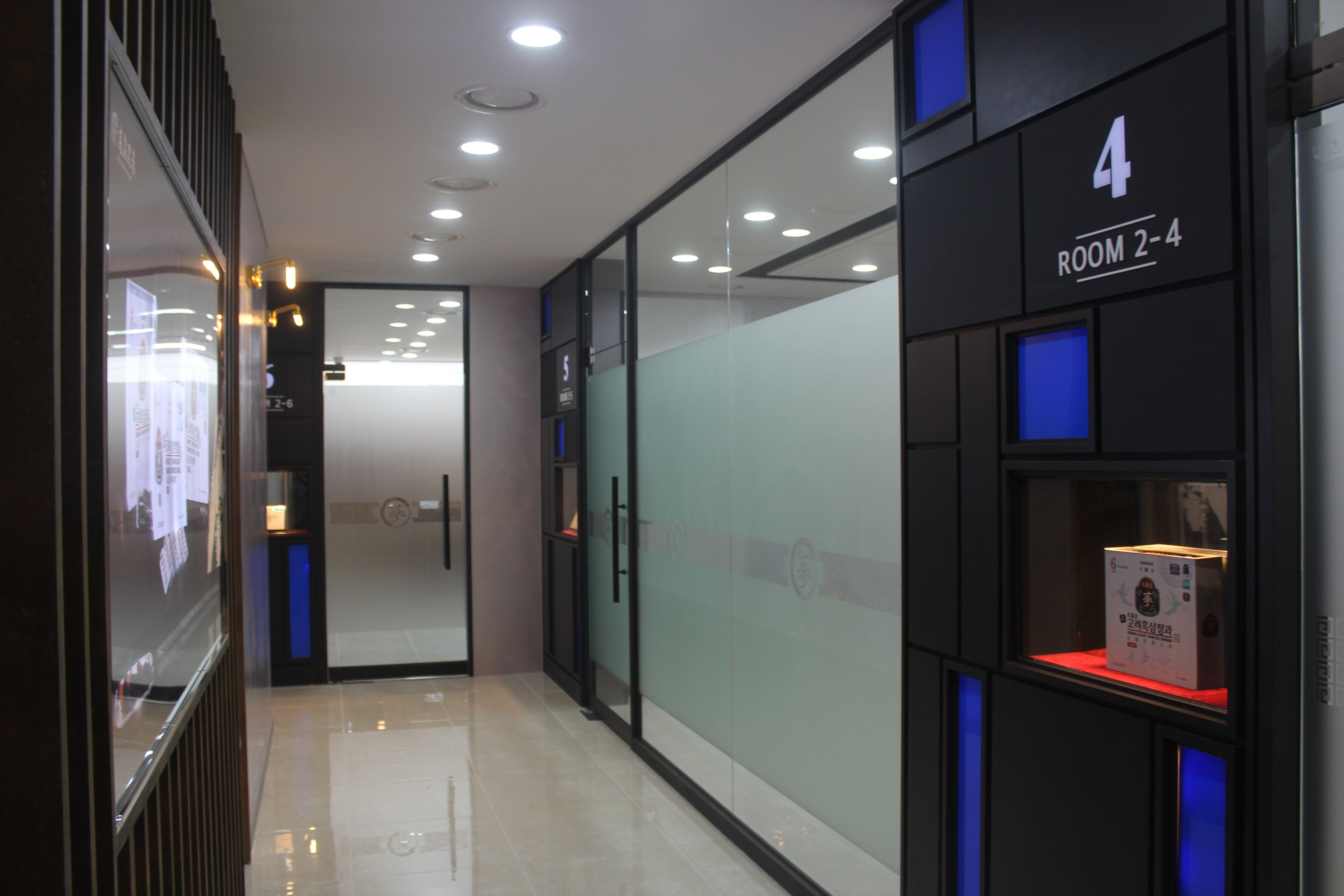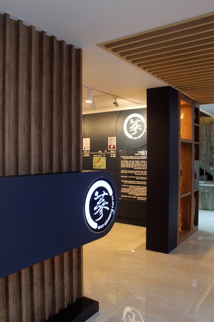 공사진행중에 갑자기 2층에 있는 판매룸을 한개 줄이고 기업홍보관을 만들었으면 해서, 현장에서 바로 디자인하고 짧은 기간동안에 만들어낸 기업홍보관이다. 이 모든게 관심과 사전에 흑삼에 대한 연구없이는 만들어내기 힘들었을거라 생각되지만 이 또한 해낼수가 있었음에 자부심을 느끼는 공간이다. 참으로 행복하고도 고마운 작업이었다.