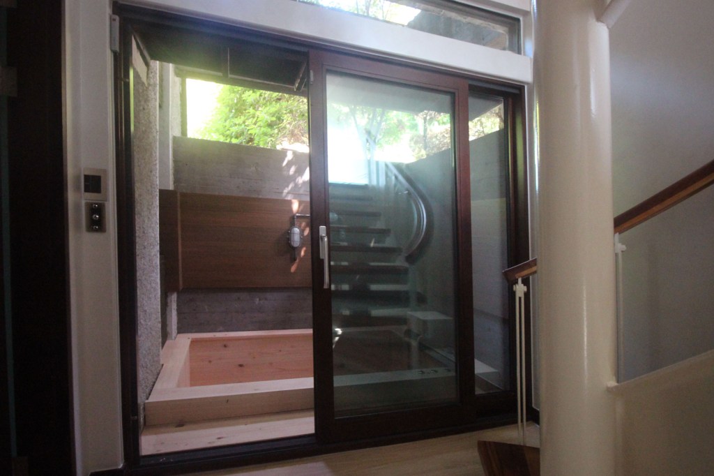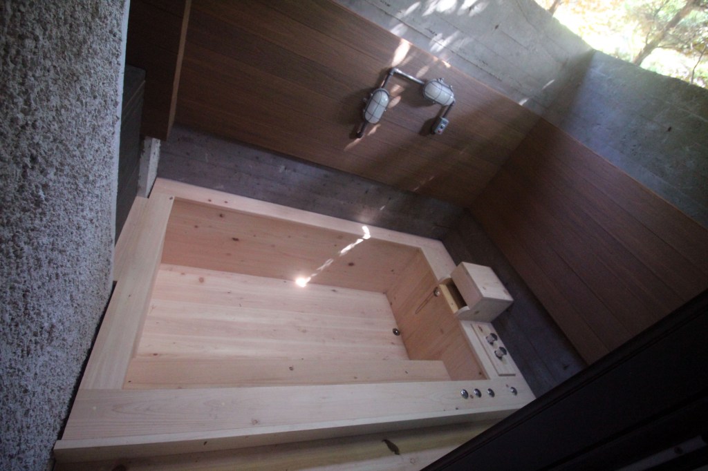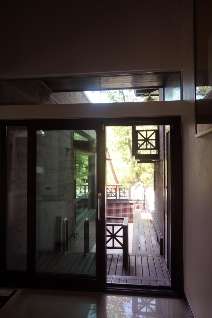 이곳에 필요없는 인공소나무가 놓여있었다. 당연히 지저분한 공간이기도 했다. 이곳에 히노끼탕이라하기에는 규모가 큰 히노끼욕조공간을 부여했다. 예산이 조금 더 들어가는 했지만 도시에서 쉬러온 자녀들과의 멋진 시간을 보낸다면 값어치를 따질 수 있을까? 감사하다.