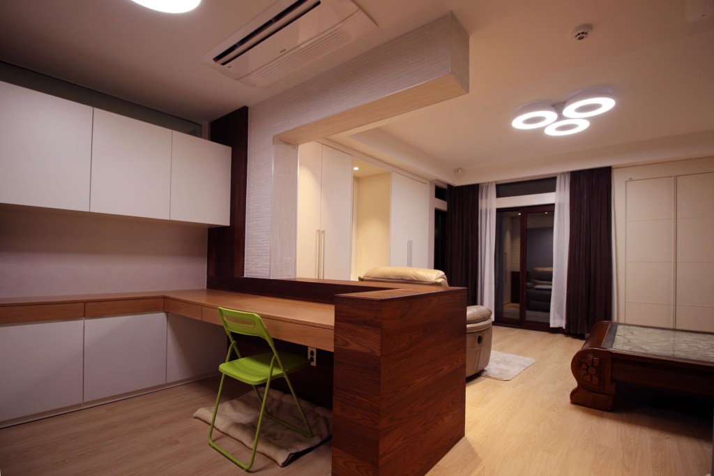 좁은 방의 칸막이를 제거해서 방을 확장하고 그곳에 서재공간을 부여했다. 당연히 구조상 문제를 없애기 위해서 최소한의 개구부를 제거해서 연출하였다.