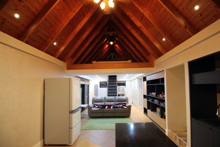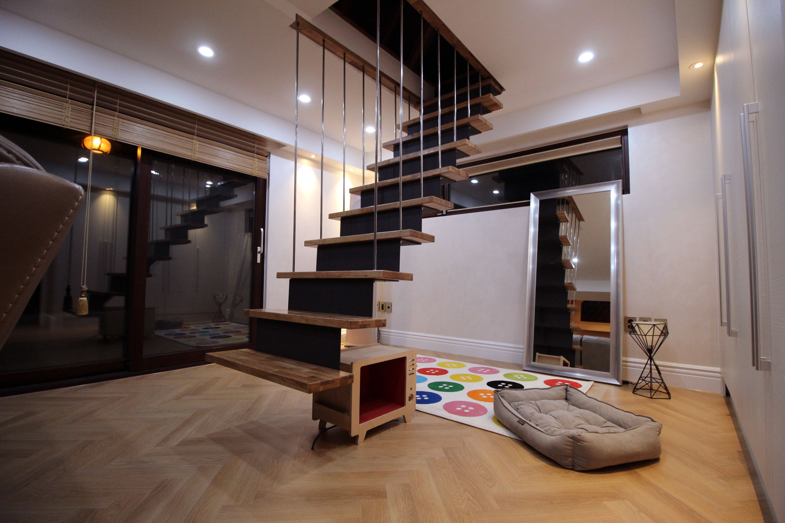 기존의 다락방을 올라가는 구조는 일반적인 접이식 사다리였는데 어울리지 않아서 흔들계단을 연출해 보았다. 참 수고가 많았지만 보람이 있다.