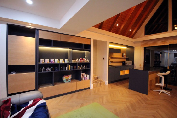 사교공간이다. 놀러온 친구들을 위한 보조바가 더 있다. 이곳에서 음악을 들으면 서로가 이야기를 나누었고 지루할 때 문을 열고 나가면 자연과 숨을 쉴 수가 있다. 이게 바로 전원생활이다.