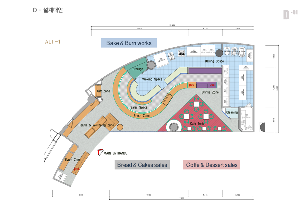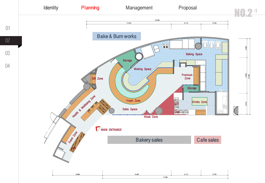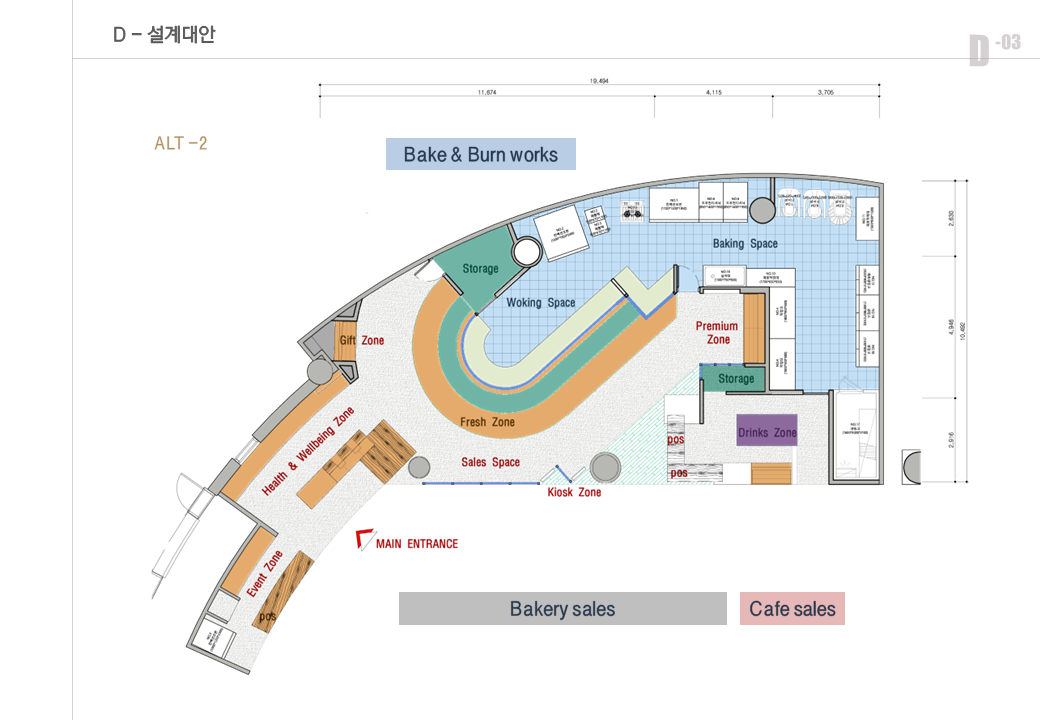 베이커리공간에서 크게는 매장과 공장으로 나누고 매장공간은 이벤트공간, 시그니쳐공간, 프레쉬공간, 선물공간, 기타진열공간으로 나누어서 진행하면 정리가 될 것 같다. 하지만 이벤트공간은 필요하지만 그만큼 큰 노력과 연구가 없이는 항상 퇴색해져가는 공간일 확률이 높다. 반짝이는 공간이 아닌 시그니쳐공간이 되기 위해서는 많은 노력과 연구가 필요할 것이다. 또한 설계기획단계부터 클라이언트와의 협의단계에서 많은 이야기가 진행되어져야 한다. 솔직히 디자이너가 풀어드릴수 있는것은 얼마나 그 공간에 접근하기가 편하고 돋보이게 연출해야 하는것과 사용의 편리성을 제하고는 한계에 부딪칠 수 밖에 없는게 현실이다
