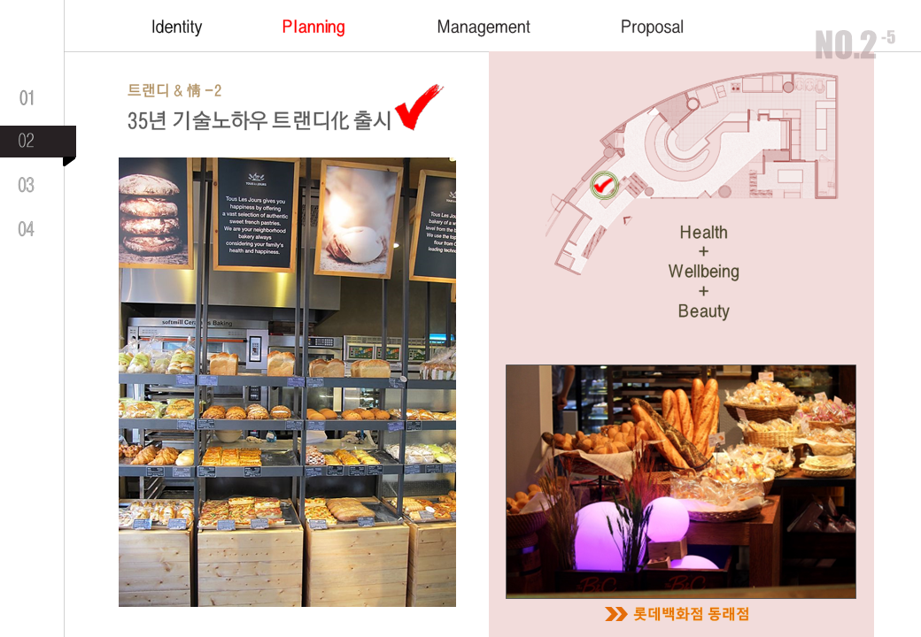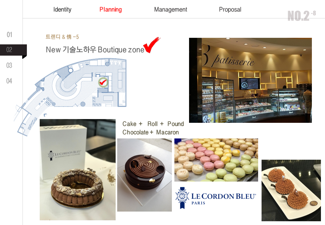 10년이상 된 브랜드가 바뀌는 거는 쉽지가 않다. 아니 밖에서 무엇을 제시한다고 해서 변하는 거는 더욱 힘들다. 그래도 모든 프로젝트는 똑같다. 먼저 그 분야에 대해서 자료수집을 한다. 그 다음에는 하고 싶은 분야의 최고중의 최고들의 3브랜드 이상을 벤치마킹을 한다. 그 다음에는 열심히 연구하고 또 연구한다. 사실 그 분야가 아닌 다른 분야에서 바라보는 시점이 더 창의적이고 시그니쳐한 결과물을 제시할 수 있다고 생각한다. 첫 발을 내민다고 생각한다. 한국의 최고가 아니라 세계 최고의 제과점이 되는 날까지 계속 분석하고 계속 힘을 보태주고 싶다.