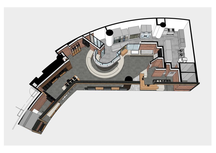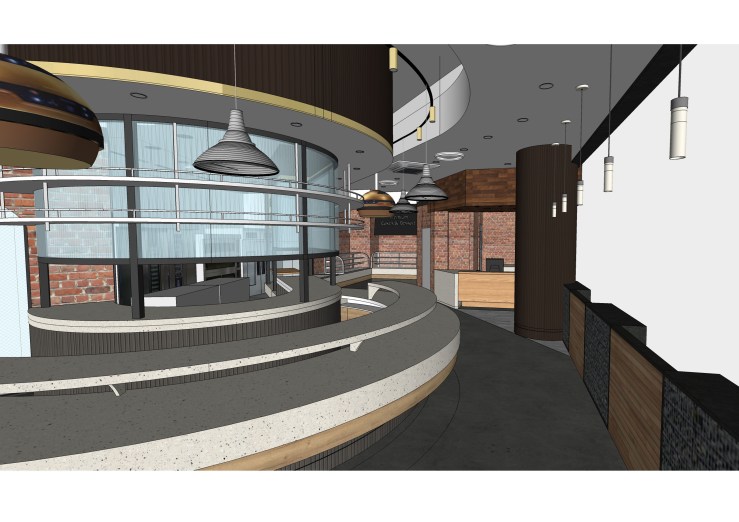 가슴을 졸이면서 작업공간이 협소해서 포기할까도 생각했지만 발상전환이 없이는 독특하고 빛나는 디자인은 생기지 못하기 때문에 강행한 컷이다. 무엇이 다를까 생각하겠지만 상부에 60센치미터의 튀어나온 구조를 눈치챘다면 이해할 것이다. 이곳을 지나는 통로는 매우좁다. 그래서 오픈컨셉이 가능했던 이곳에는 입구와 보조입구가 필요했다. 그래서 매스가 나온다면 좋은 아이디어이지만 건축가능한 경계가 있지 않나 하지만 지상은 의견에 따라서 달라지기때문에 도전을 했던거다. 모두다 좋은 디자인이기에 별다른 이견이 없었던 갔기도 하지만 이견없이 지나간게 행복한 순간이다. 다음 기회에는 더욱더 적극적인 자세로 임해야 하겠다. 사실 나중에 컴플레인이 생기면 어쩌나 하는 생각도 들어서 모든 공간에 적용된 사례를 꼼꼼히 조사해서 의견이 나오면 대비할 만한 내용도 많이 수집을 했기때문에 자신은 있었다. 하지만 백화점은 그것이 용납되지 않을때도 많기 때문에 안심은 하지 못했다.