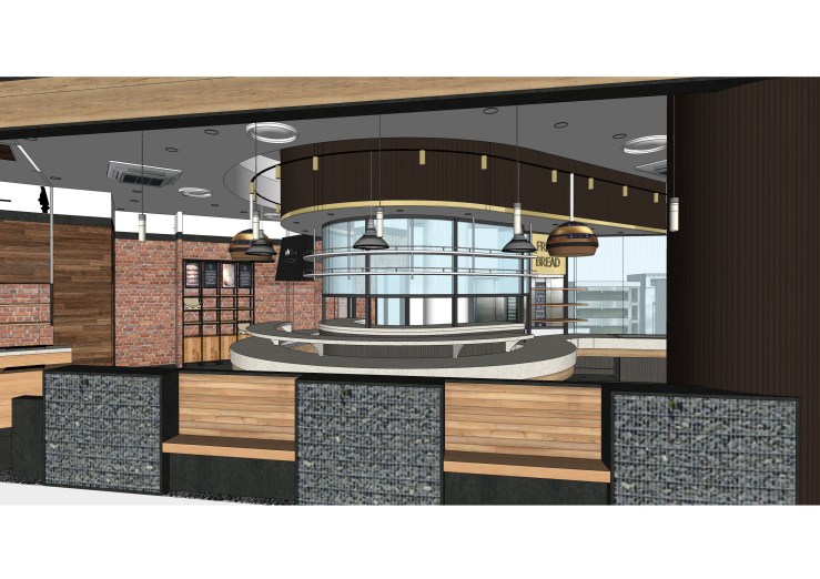 디자인을 하면서 항상 느끼고 또 고려하는 것은 정해진 공간안에서 얼마나 더욱더 알차게 공간을 구성하는냐도 중요하지만 주어진 공간안에서 더 확장성을 가지고 더 크게 더 넓게 보이도록 노력하는것이 디자이너로서의 또 다른 사명이다. 본 매장의 처음 브랜드는 피자헛이었다. 물론 경계는 파티션월(유리창)의 유리재질로 인해 주변의 다양한 디자인요소가 비춰짐으로 인해서 너무나 어지럽고 복잡해 보였다. 건축주님과 많은 상의와 백화점담당자들과의 여론수렴후에 최소한의 경계와 최소한의 반사재를 사용하기로 했다. 물론 그 선택은 너무나 잘된 선택이었다.