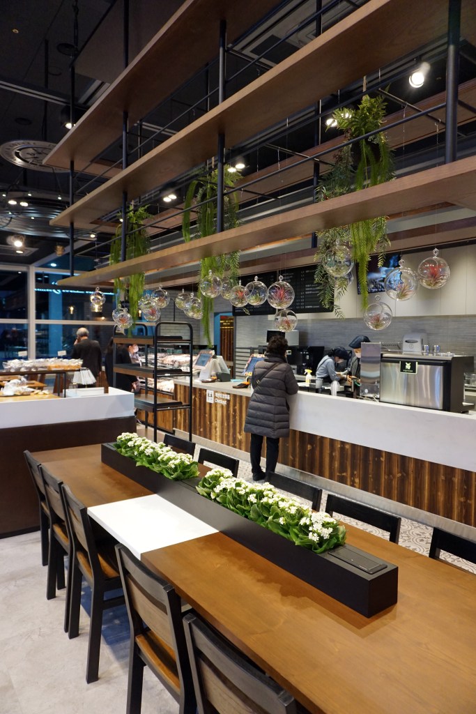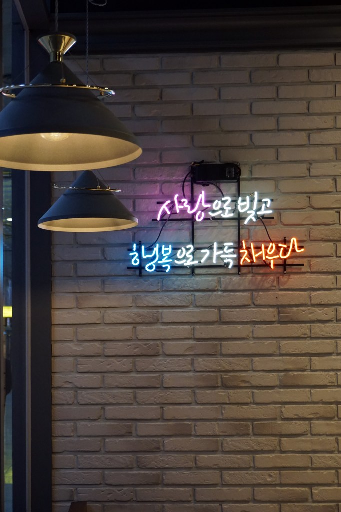 한국의 처마를 상징하며 구시대적인 방앗간은 아니지만 최소한의 구조적 프레임과 원목과 철의 만남, 그안에 보이는 마감색의 회색빛으로 최대한 모던한 컨셉이지만 전통적인 느낌을 주려고 노력했다. 그래서 제과점에는 적벽돌타일을 선호했지만 이곳에는 회색계통의 색을 골랐다. 바닥은 최소한의 한국적 문양이 아닌 세련된 현대인들에게 최소한의 어필을 할 수 있는 문양을 선택하였다.