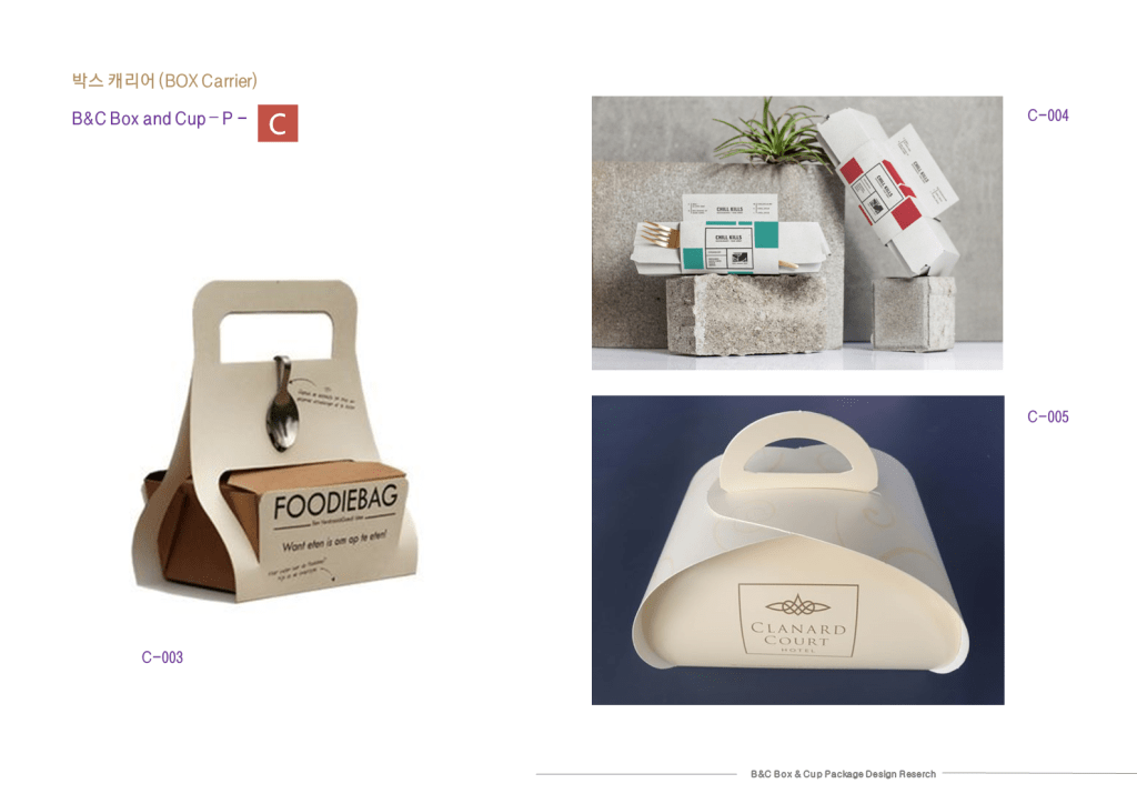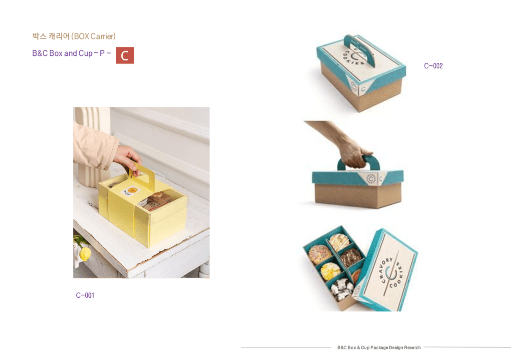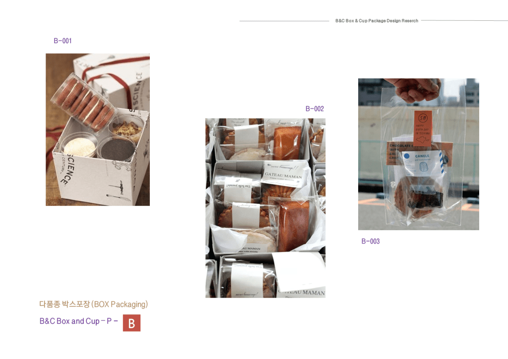 박스앤컵의 시작은 혼족, 1인 1가구의 증가와 베이커리로 식사를 대용하는 젊은 새대가 늘어나고 있음에 초점을 두었다. 소품종, 소량화, 스틱화, 간편한 포장 등으로 대응해 나가야 한다. 케잌도 피스화 되어가고 있고 소량의 물량으로 패킹을 해야하며, 다양한 제품을 선보여야 살아날 수 있는 여건인 환경에서 포장에 신경을 더욱 써야만 한다. 베이커리를 담을 수 있는 BOX와 CUP으로 상품화를 해나가야 한다.