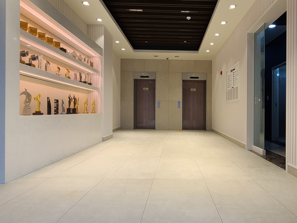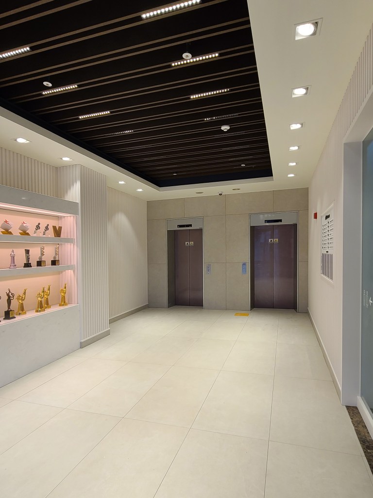 위 사진은 로비의 벽체와 천장을 변경했던 결과물이다. 솔직히 바닥타일과 벽면의 천연대리석은 재질을 바꾸고 싶지는 않았다. 왜냐하면 올드할 수도 있지만 고급스러운 재질이기도 하기때문이다. 그래서 유지하고 싶었지만 알비더불유는 종합엔터테인먼트 회사이기 때문에 좀더 젊은 트랜드를 원했기 때문에 재질을 바꾸기로 정했고 아래처럼 벽과 바닥의 타일도 바꾸기로 했다.